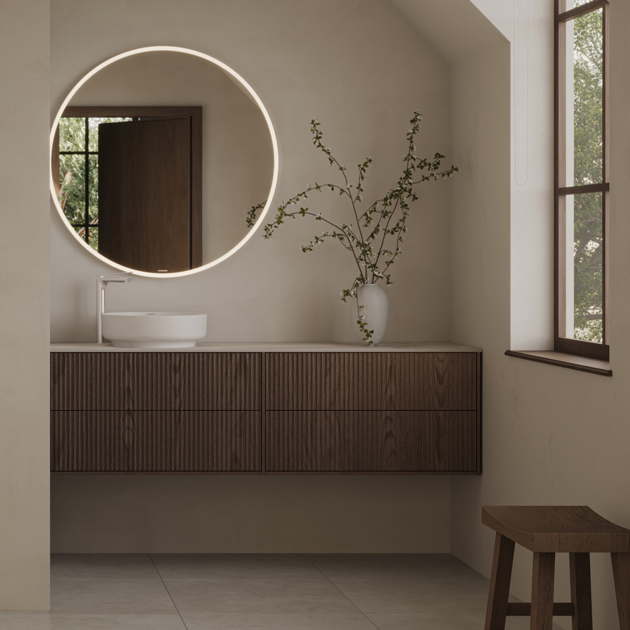 Jalusin är en del av vårt tidiga formspråk – en ikon från 70- och 80-talet som präglade många svenska badrum. I dag möter detta arv modern skandinavisk form i Epos. Den uppdaterade jalusifronten i massivt trä hyllar vårt ursprung i ett samtida uttryck.