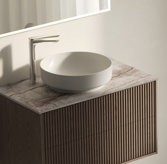 Det nya uttrycket för Epos lyfter fram det äkta och taktila, med massivt trä där ådring och naturlig variation får ta plats i harmoni med modern skandinavisk form. Fronterna Jalusi och Svall knyter an till vårt designarv och naturens linjer. Tillsammans med bänkskivor i granitkeramik och en uppdaterad lådinredning får serien ett exklusivt helhetsintryck där hantverket tydligt framträder. Resultatet är tidlös och relevant badrumsinredning med en varm, personlig karaktär.