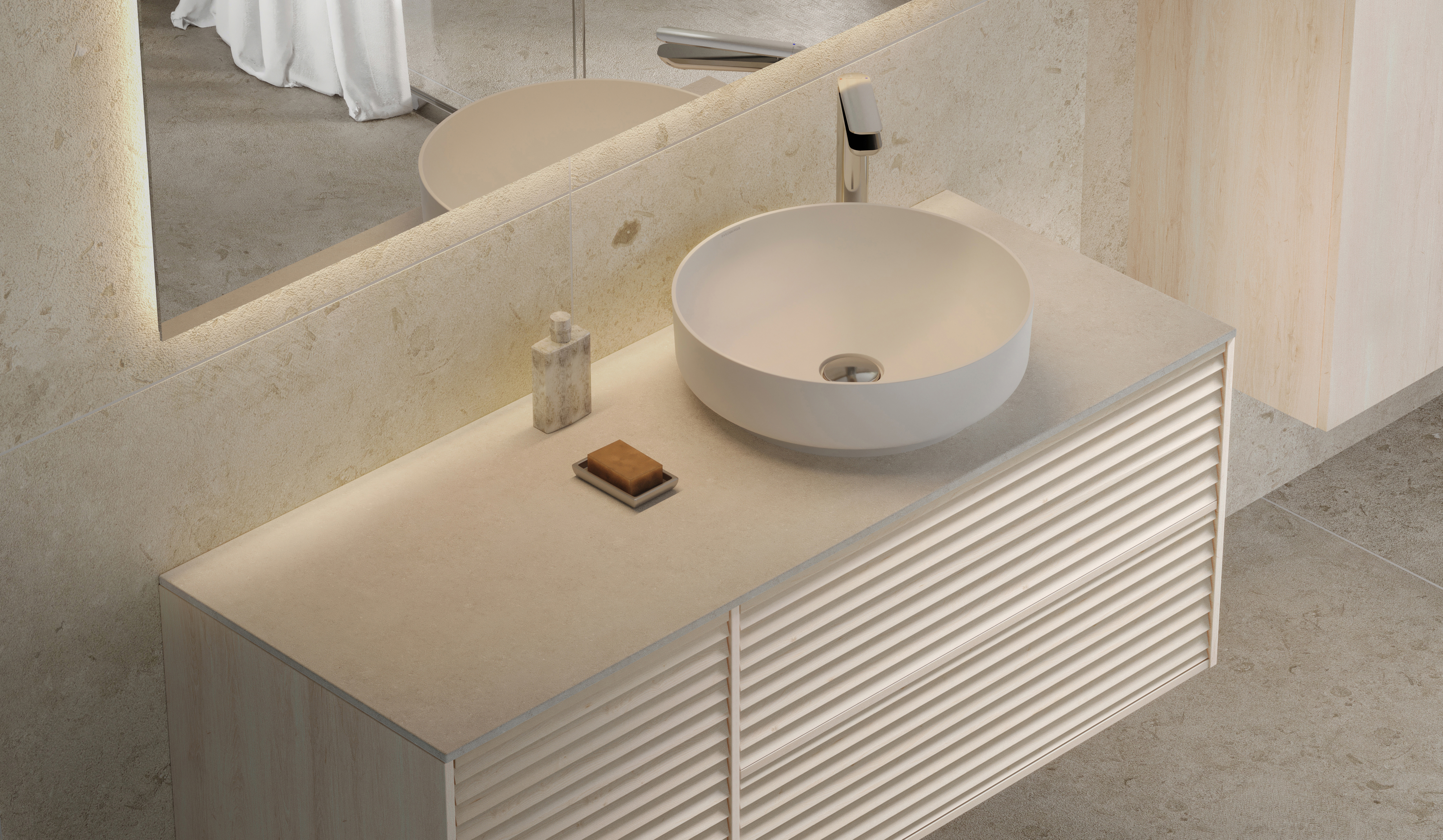 Bänkskivor i granitkeramik ger dig frihet att forma uttrycket i ditt badrum. De naturliga tonerna och det skandinaviska uttrycket gör det enkelt att hitta en stil som passar ditt hem, och med olika färger och mönstringar kan du skapa ett lugnt och tidlöst intryck.
