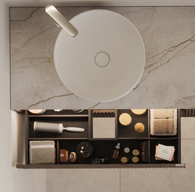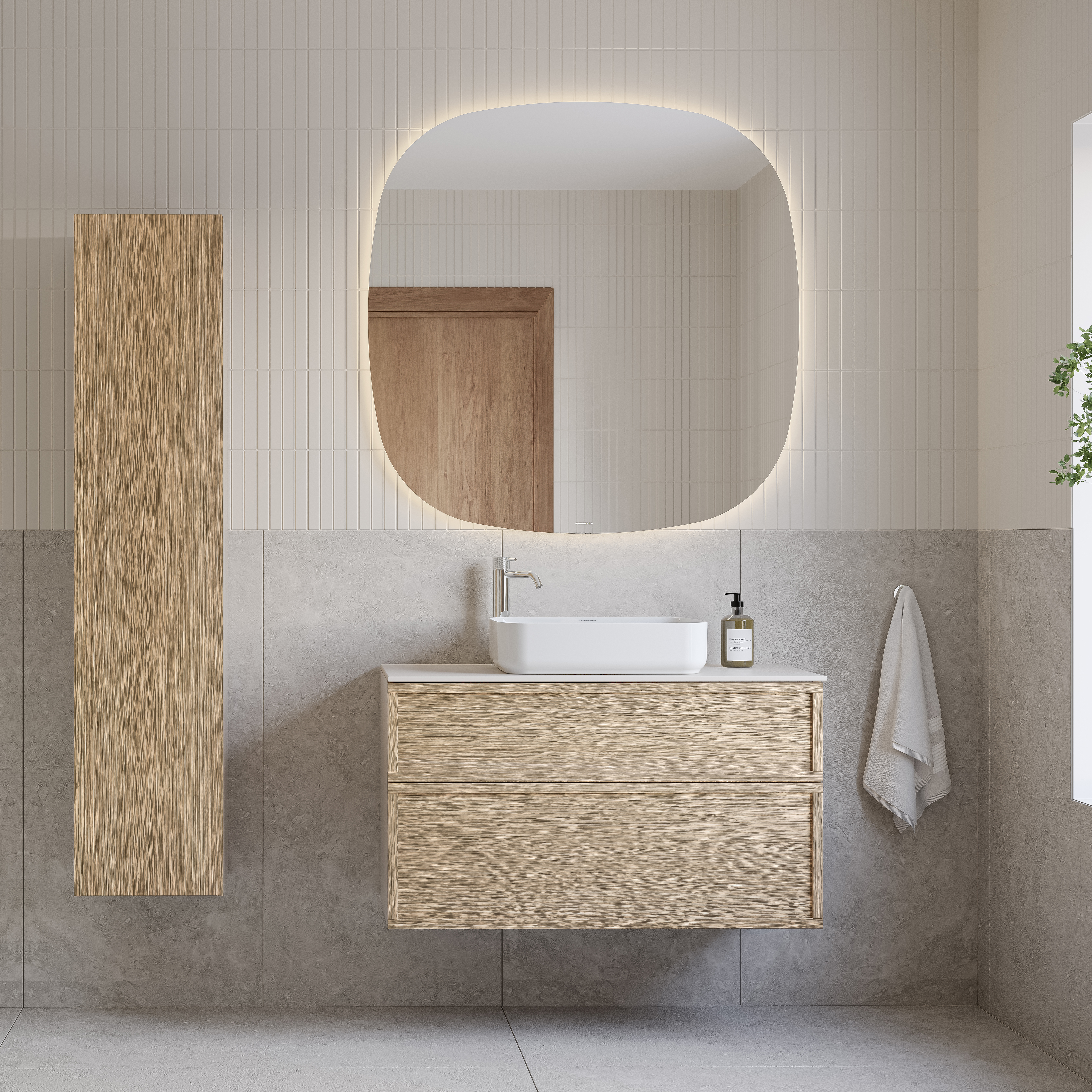 Möjligheten att välja placering av blandarhål gör det enkelt att anpassa möbeln efter både rummet och din stil, och ger dig frihet att forma funktion och uttryck på ett sätt som känns naturligt i badrummet.